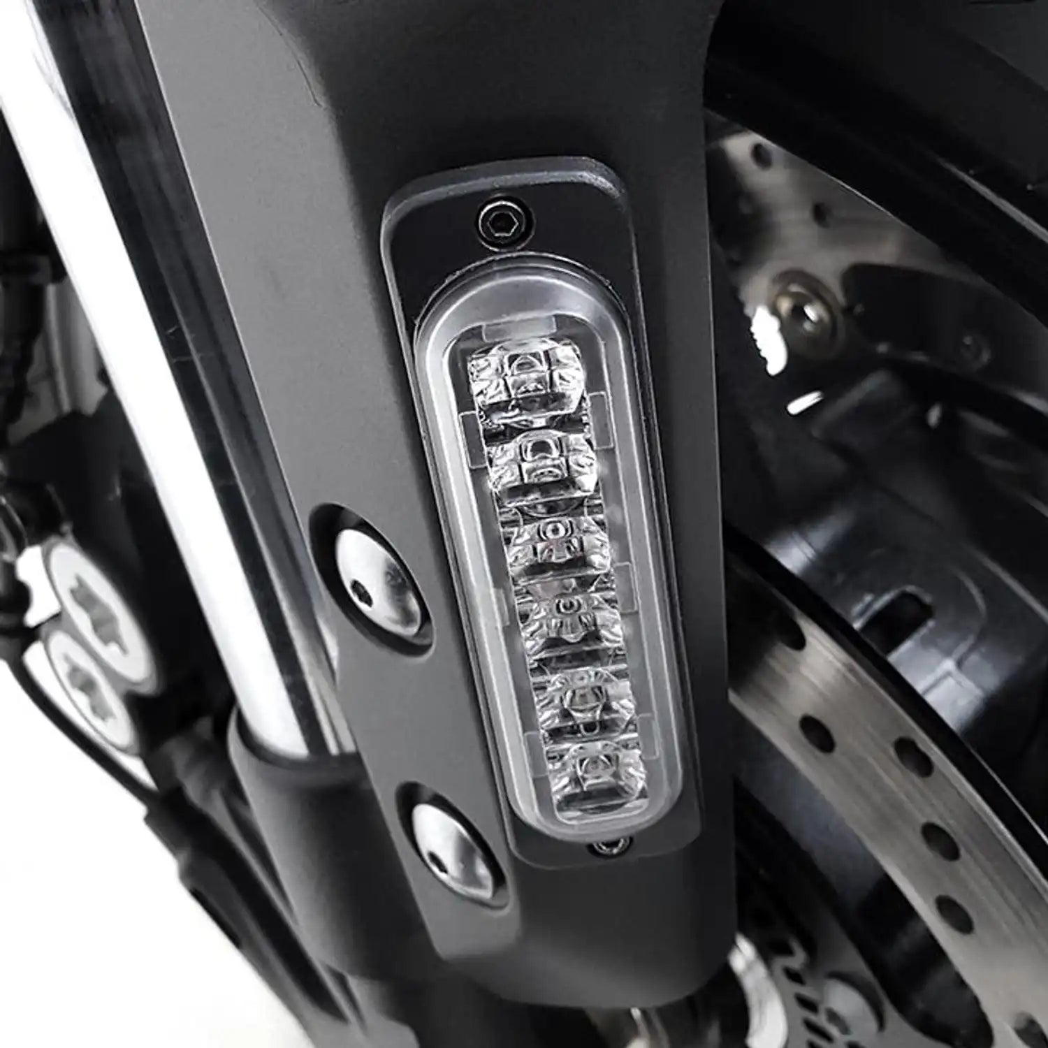 Conçus pour offrir un éclairage maximal dans un format ultra-compact, les feux de jour DENALI s'intègrent parfaitement à l'avant de la moto et offrent une luminosité exceptionnelle. Dotés d'un circuit à double intensité intégré, ils peuvent être câblés pour fonctionner à pleine intensité, à demi-intensité ou basculer automatiquement entre les deux grâce au commutateur de feux de route d'origine. Le connecteur étanche et le câble Posi-Tap permettent un raccordement direct au circuit des feux de position, pour une installation et une utilisation simplifiées : les feux de jour s'allument et s'éteignent automatiquement avec le contact.